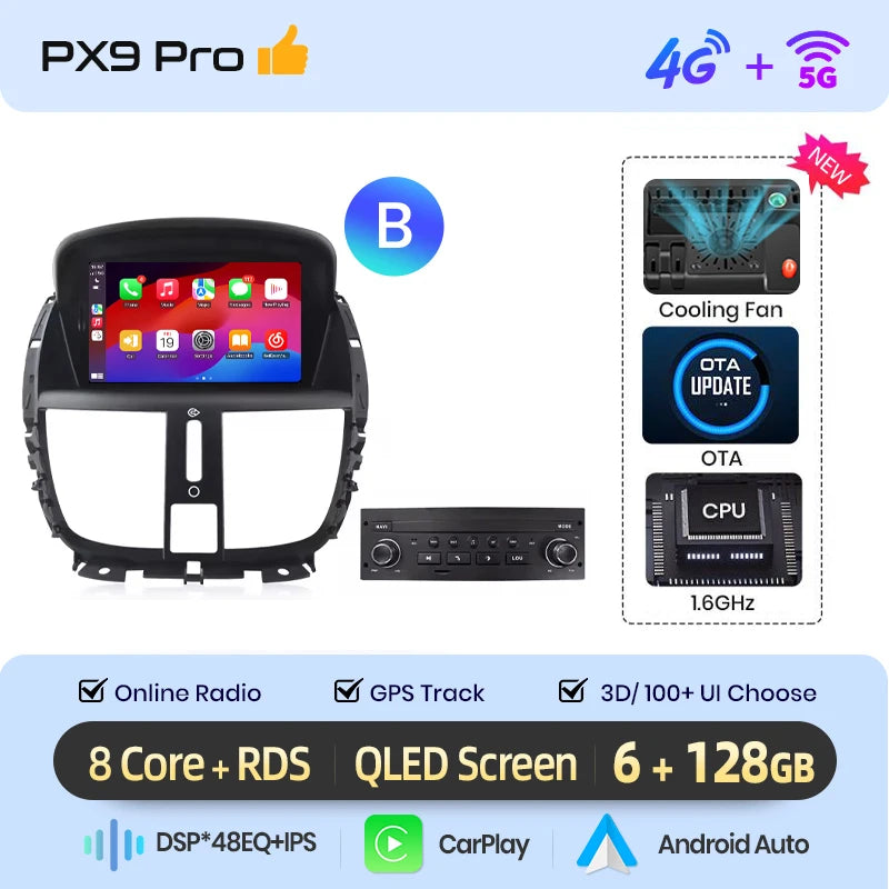 Peugeot 207 / 207 CC (2006–2015) Autoradio mit kabellosem CarPlay, Android Auto und integriertem GPS – Intelligentes Multimediasystem