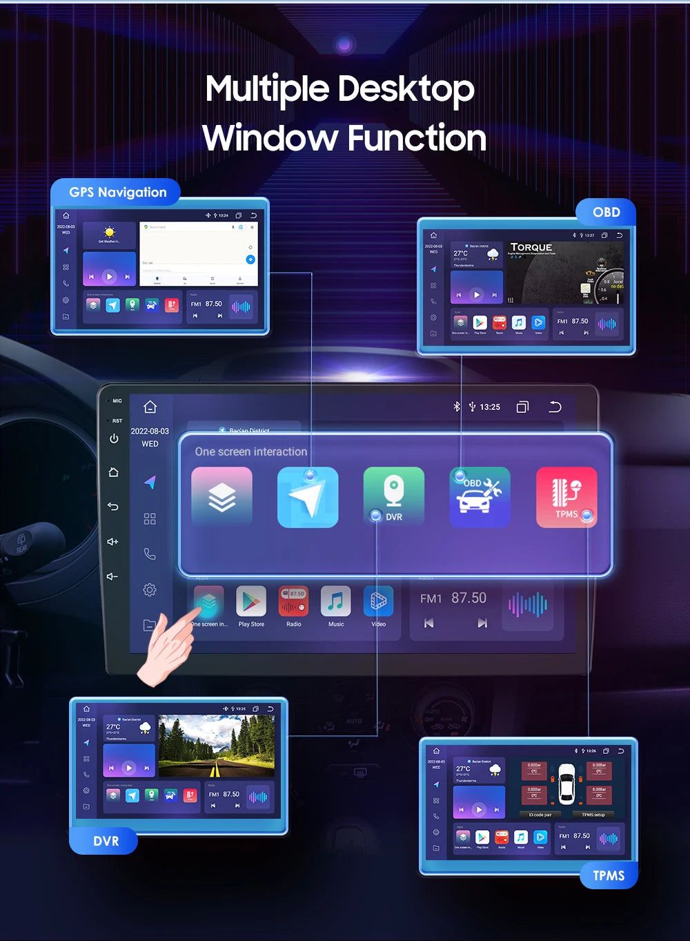 Supporte CarPlay sans fil et Android Auto sans fil et filaire, permettant une intégration transparente avec les smartphones.